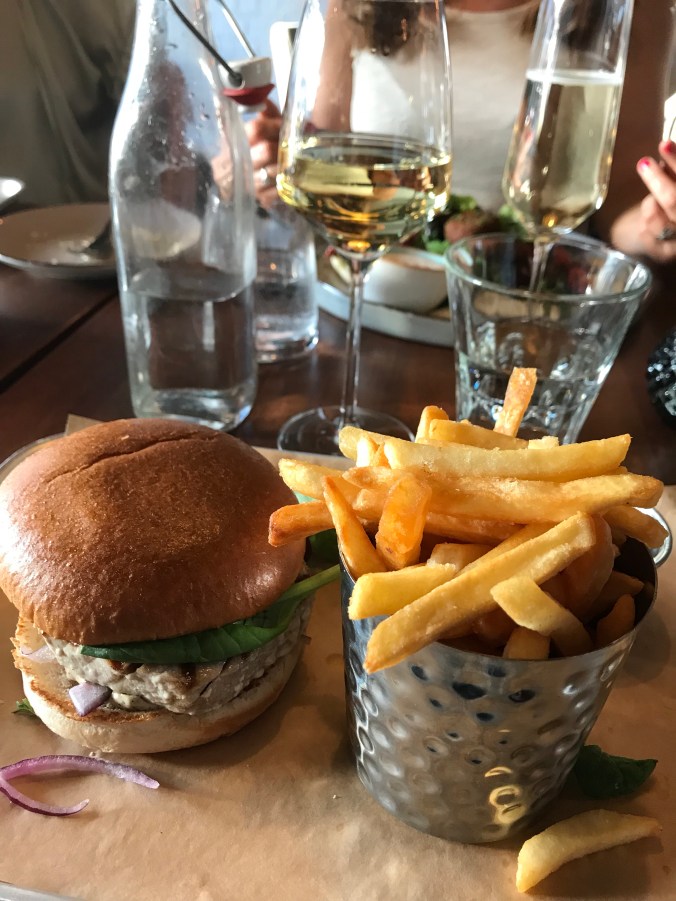 Vi var fyra familjer som cyklade bort till Restaurang Tybble för mat en av kvällarna. Perfekt med den lilla lekparken utanför restaurangen där barnen kunde hänga både före och efter maten.