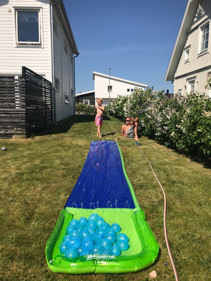 Underbart väder, igen. Sol, bad och vattenlek hela dagen lång, hela helgen. Kompisar som kommer och går.