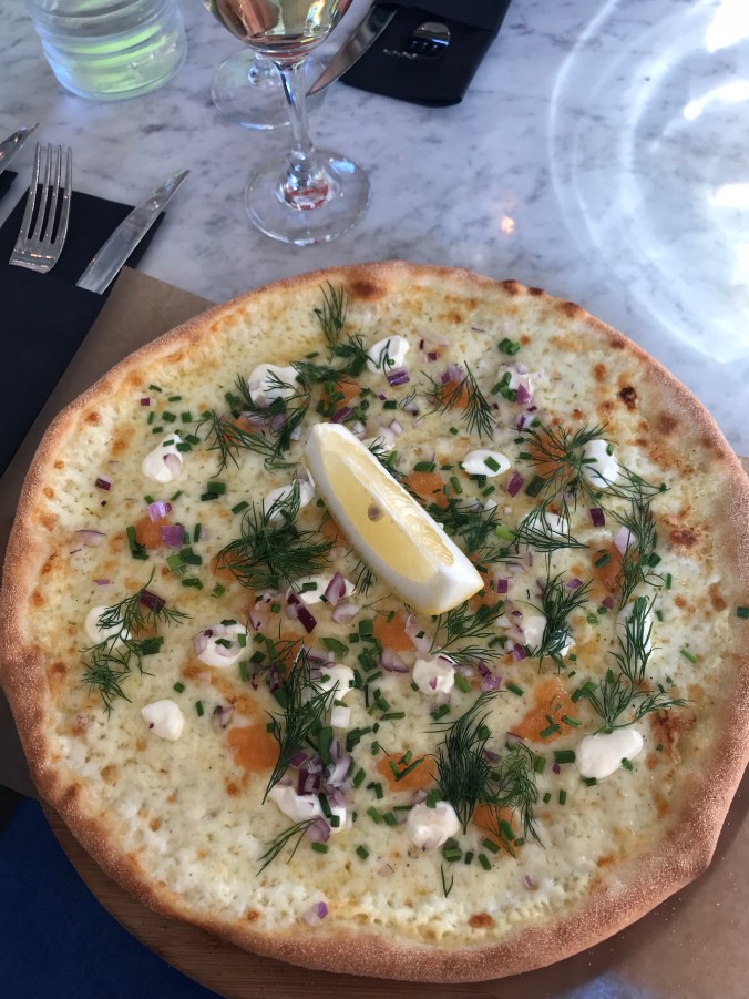 Morsdagsmiddag på Sorella. En mycket god löjromspizza fanns bland annat på menyn. Mums!