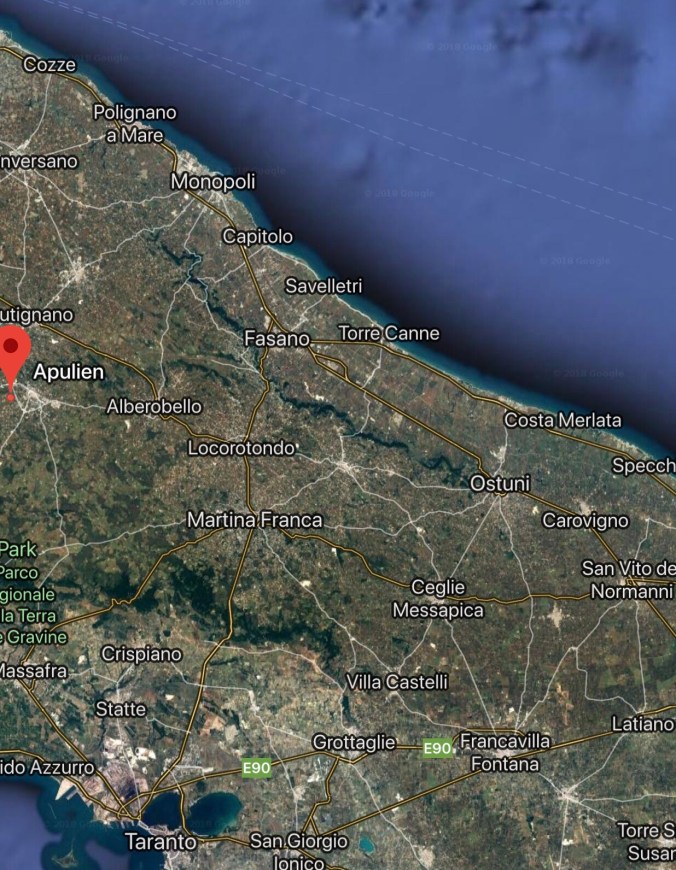 Därför måste jag tipsa om Apulien/Puglia i Italien. Det är en region i södra Italien. Nås enklast genom flyg till Brindisi. Till Apulien har vi åkt i två omgångar. Vi har flugit dit och sedan hyrt bil där.