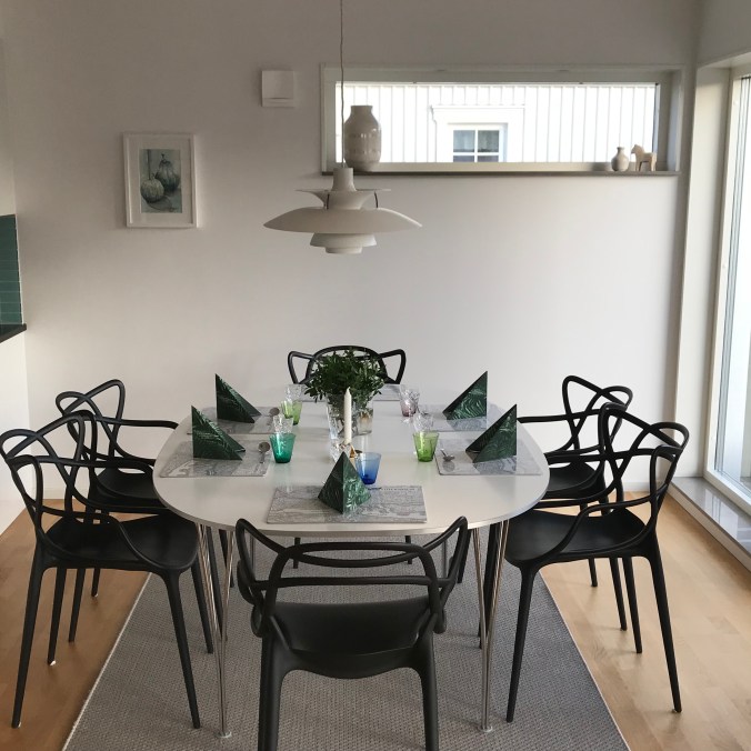 Sedan, efter huvudrätten, öppnades ett nytt kuvert med information om vart alla skulle ta vägen för efterrätt. Och vi skulle ju hem till oss.