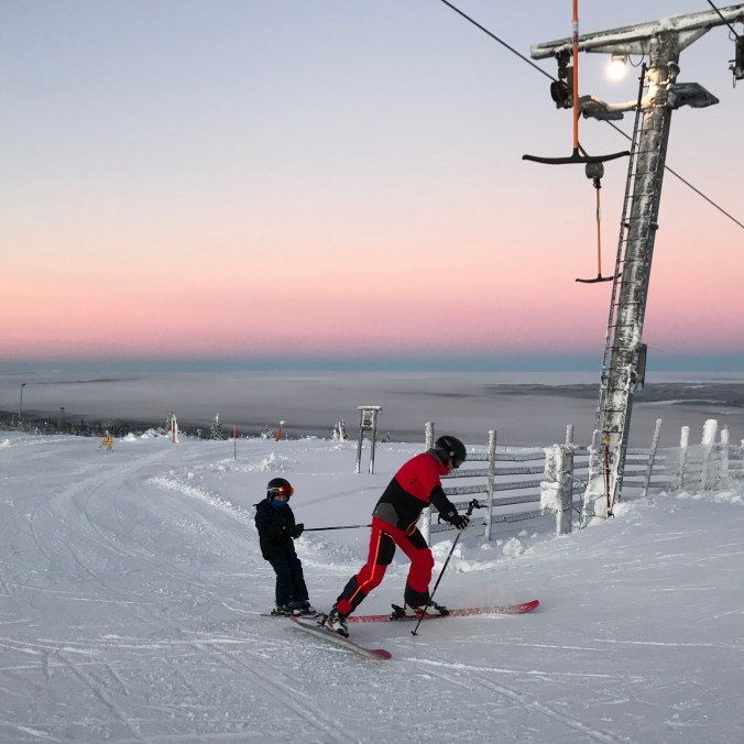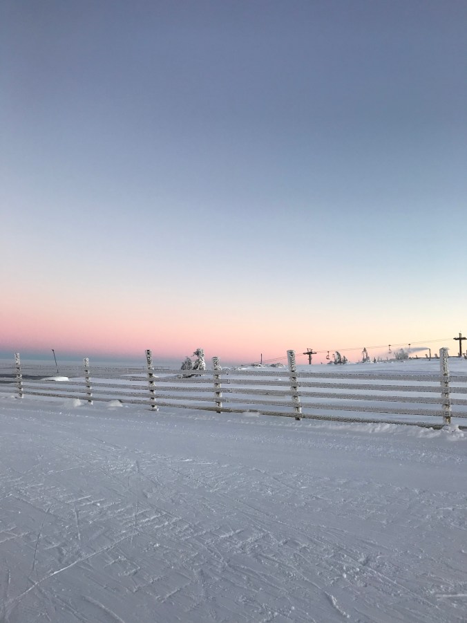 Men naturen har bjudit på magiska vyer idag. Strålande sol, gnistrande snö, dis, dimma och en underbar solnedgång i gult, rosa och lila.