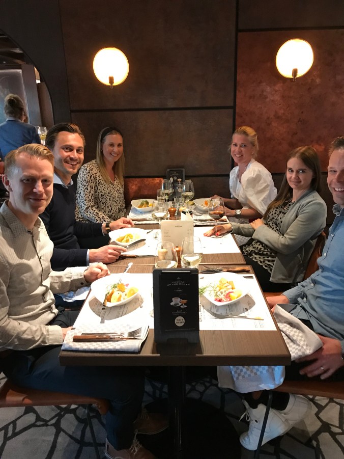 På hemresan hade vi inte bokat bord på någon restaurang men vi bestämde oss för att köa till en av de restauranger man inte kan förboka. Jag är ingen båtbufféentusiast, föredrar andra alternativ. Vi hade iaf tur och fick ett bord snabbt för alla 13 personer. Barnen fick ett eget bord.