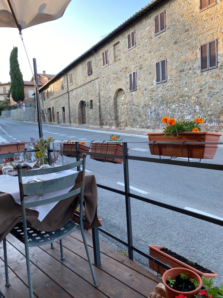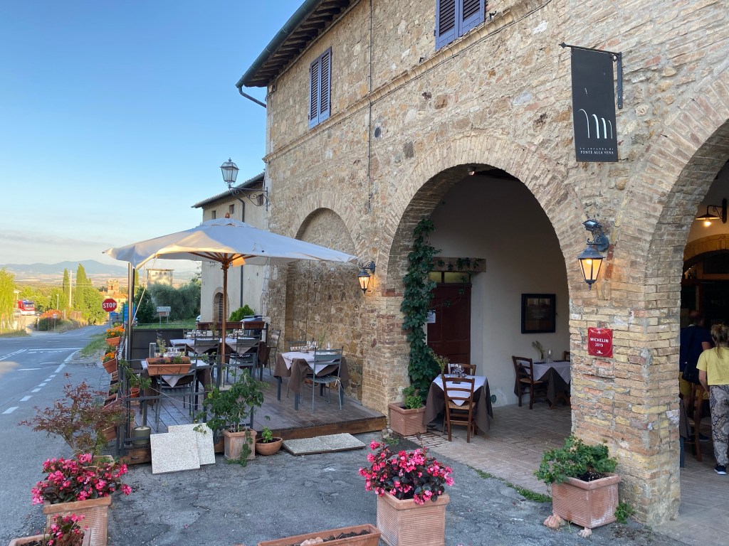 Vi hade fått tips om två mysiga byar längs vägen där vi kunde stanna och äta middag. Och mitt ute i en av dessa byar hittade vi en helt fantastisk restaurang. Maten och vinet smakade så gott!