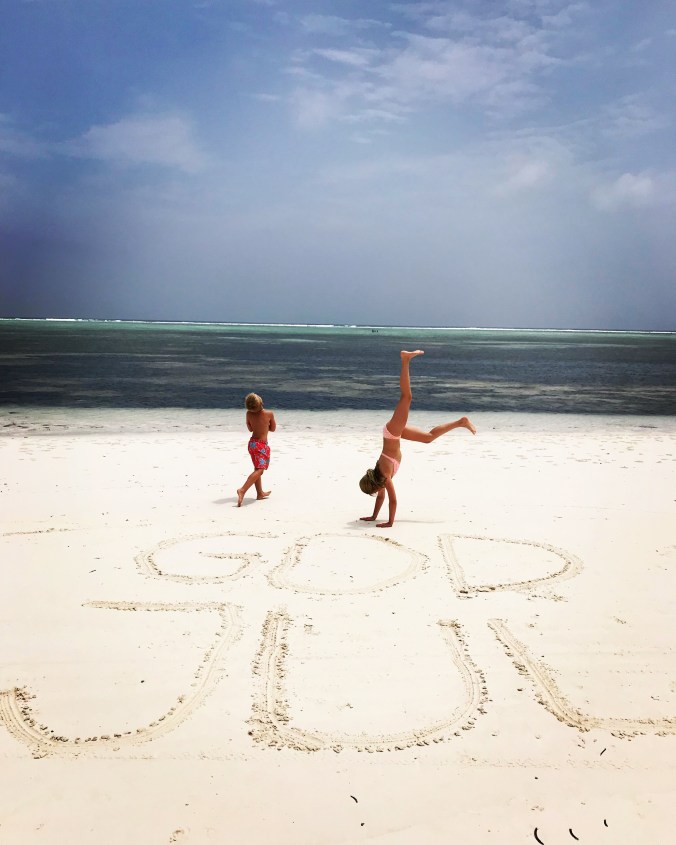 På en kritvit – helt fantastisk – strand på Zanzibar.