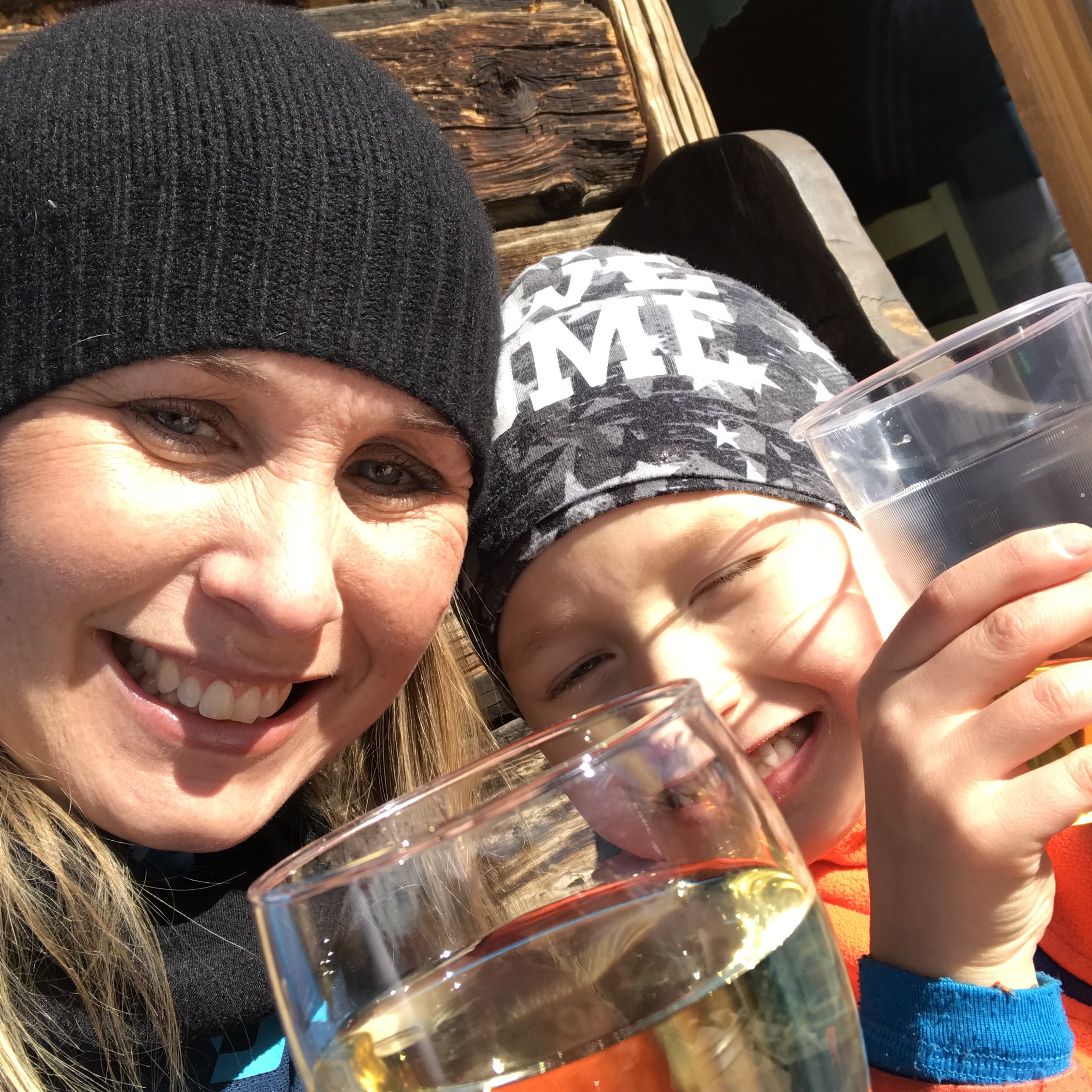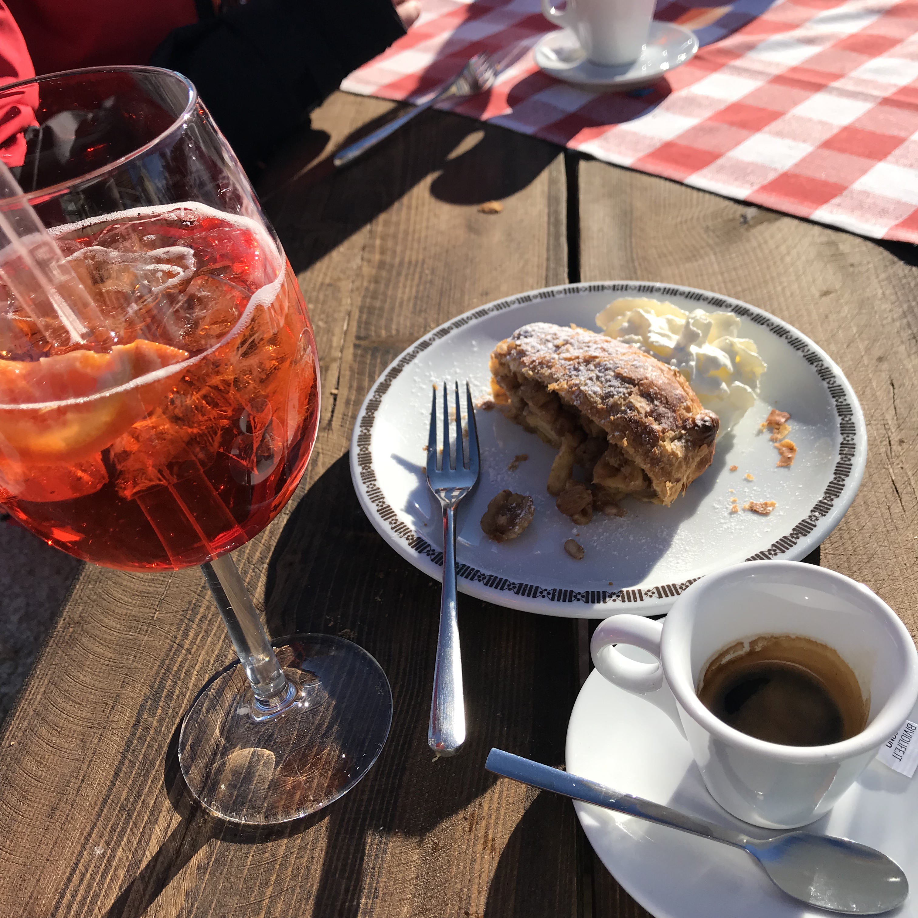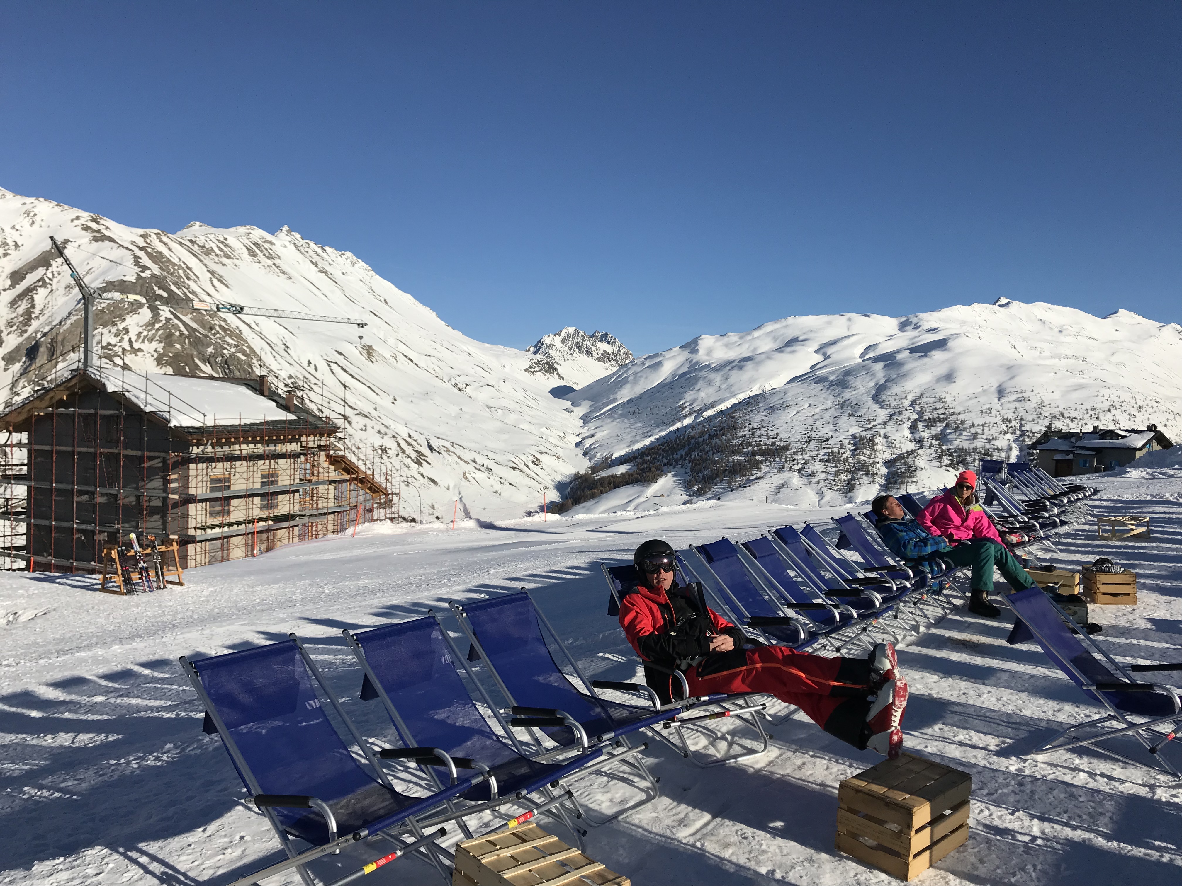 Glassväder. Lite kyligare kanske just den dagen, men men. Den här restaurangen låg längst ner vid backen/byn. Bra val denna dag eftersom det blåste på lite mer.
