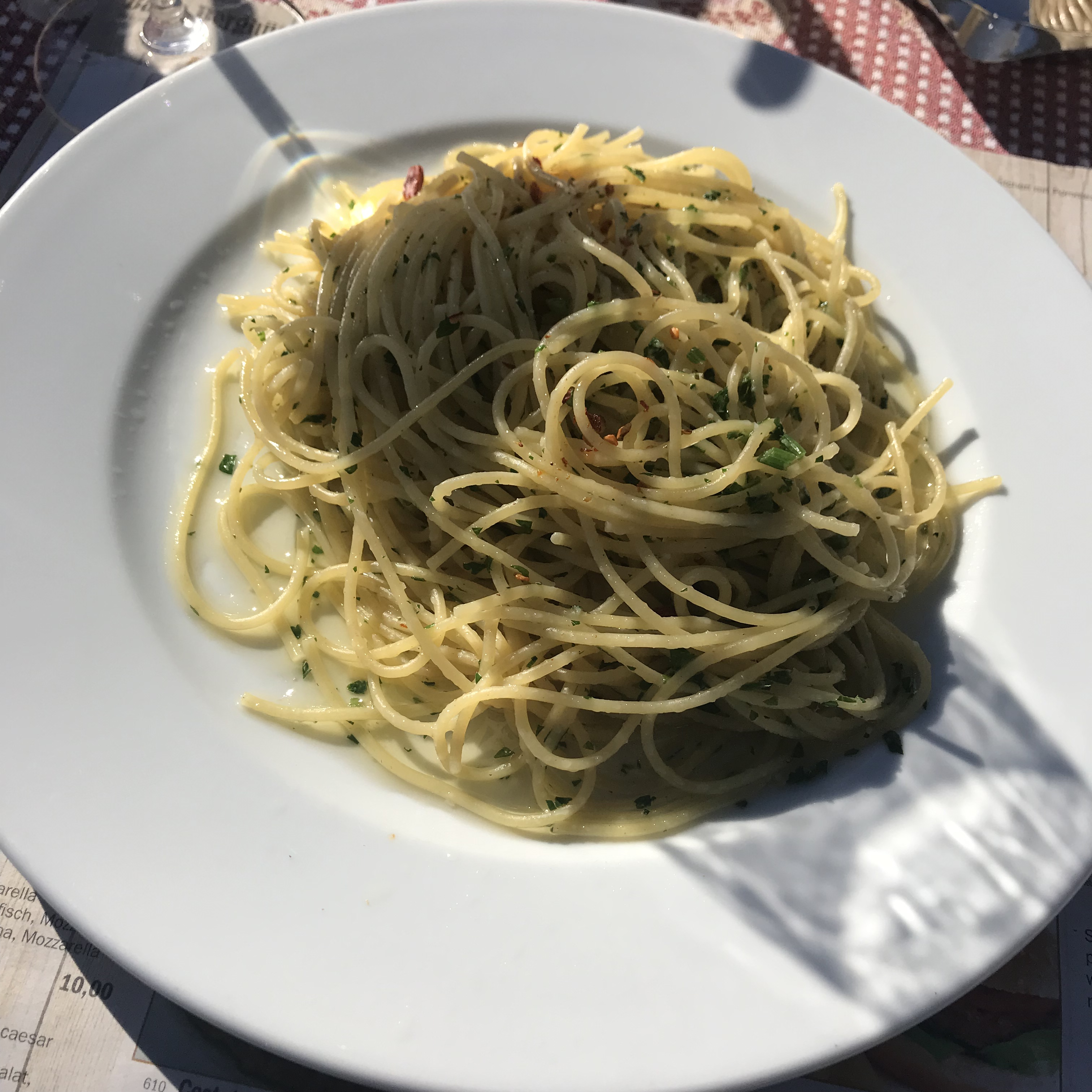 Mycket pasta har det blivit. Och strudel. Det är sedan gammalt. 😃 En god pastarätt var denna – med olja, vitlök och chili. Stark som tusan men himla god. Tog garanterat död på eventuella förkylningssymptom.