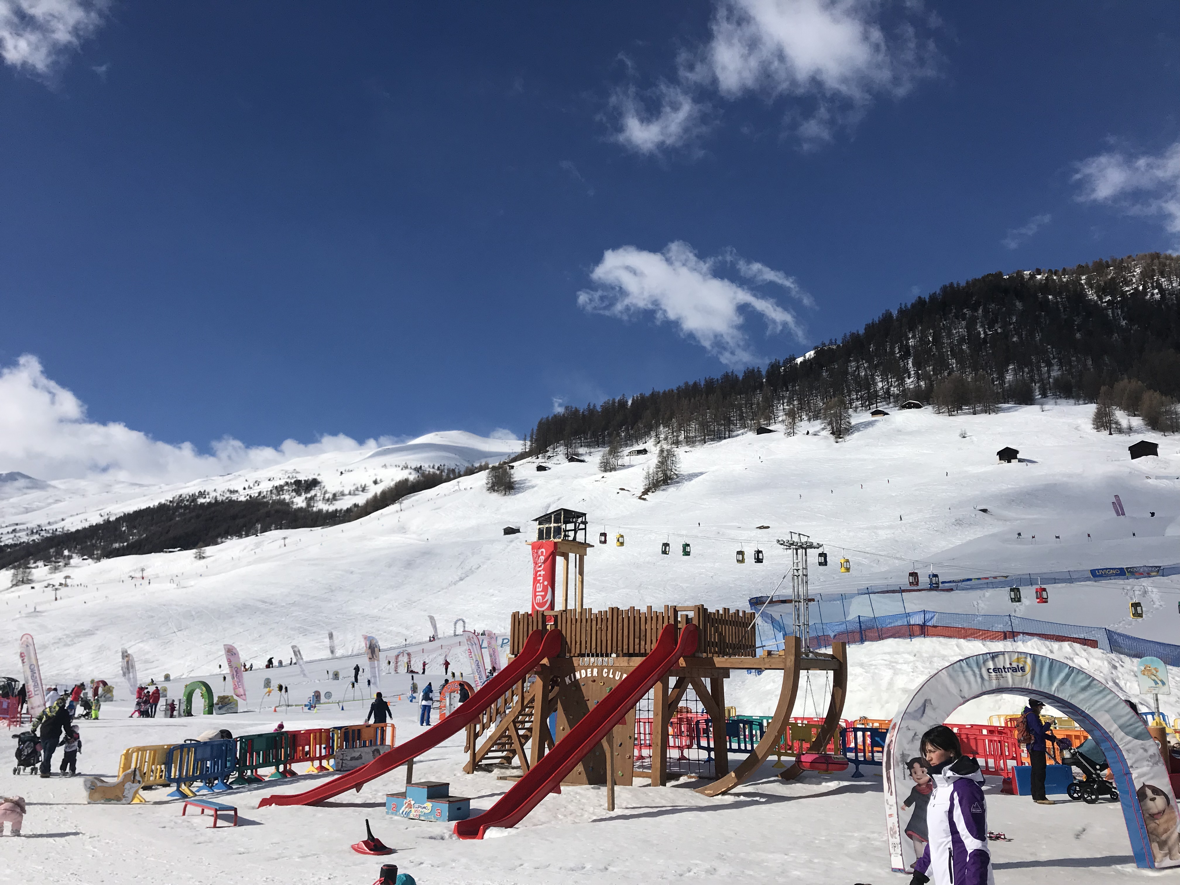Barnen har många backar att välja på både enklare och svårare backar. För de mindre barnen som kanske inte alls åker skidor finns ett större lekområde på Carosello sidan.