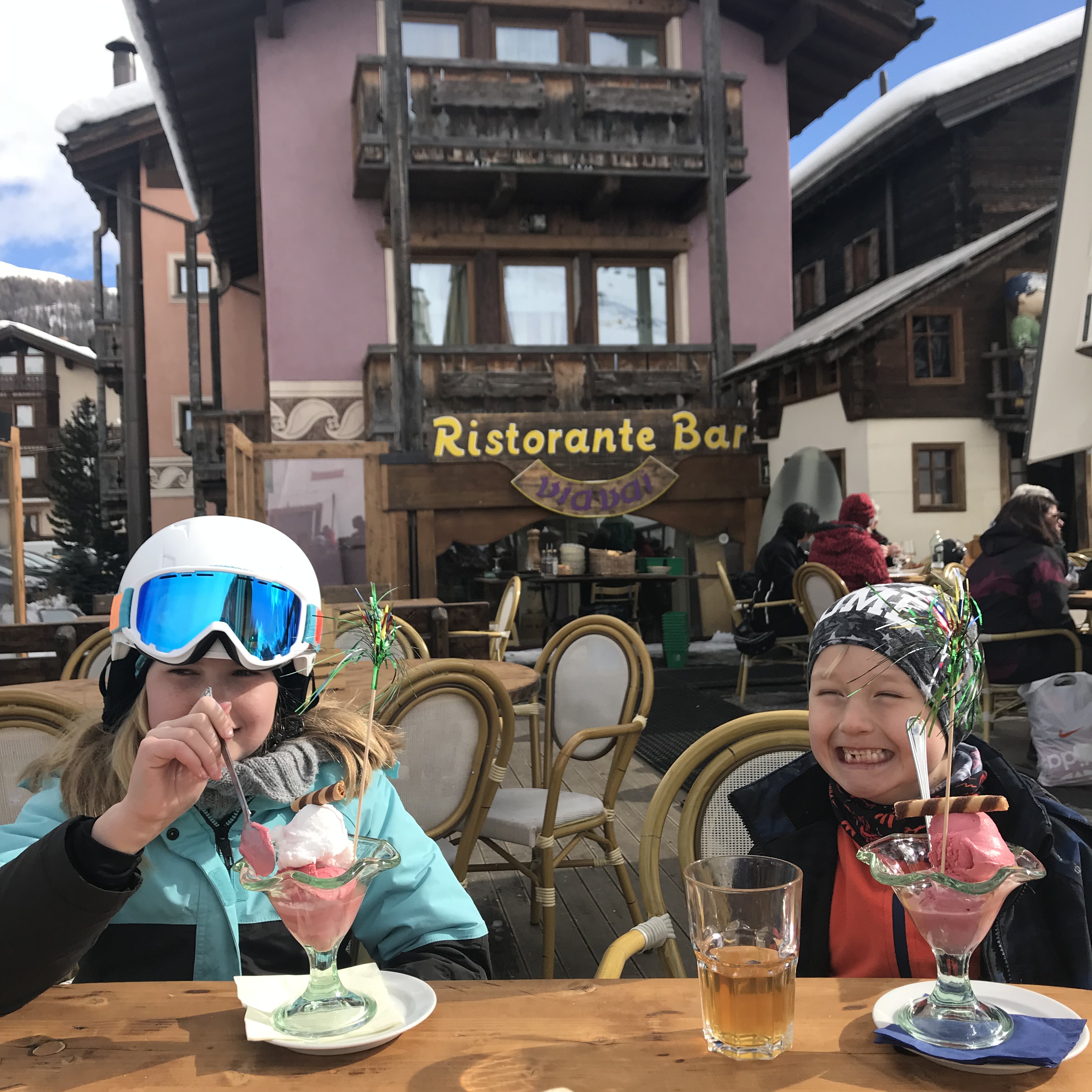 Det finns skidskola både på italienska och engelska, jag tror även det finns på fler språk.