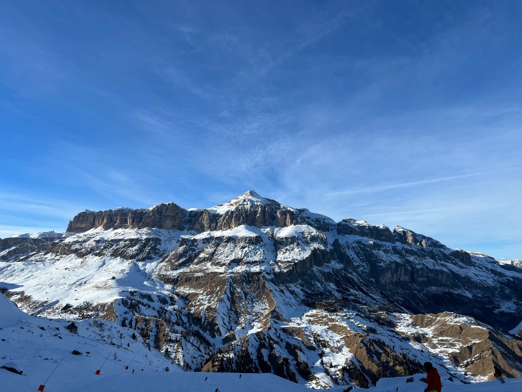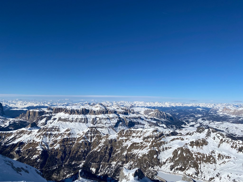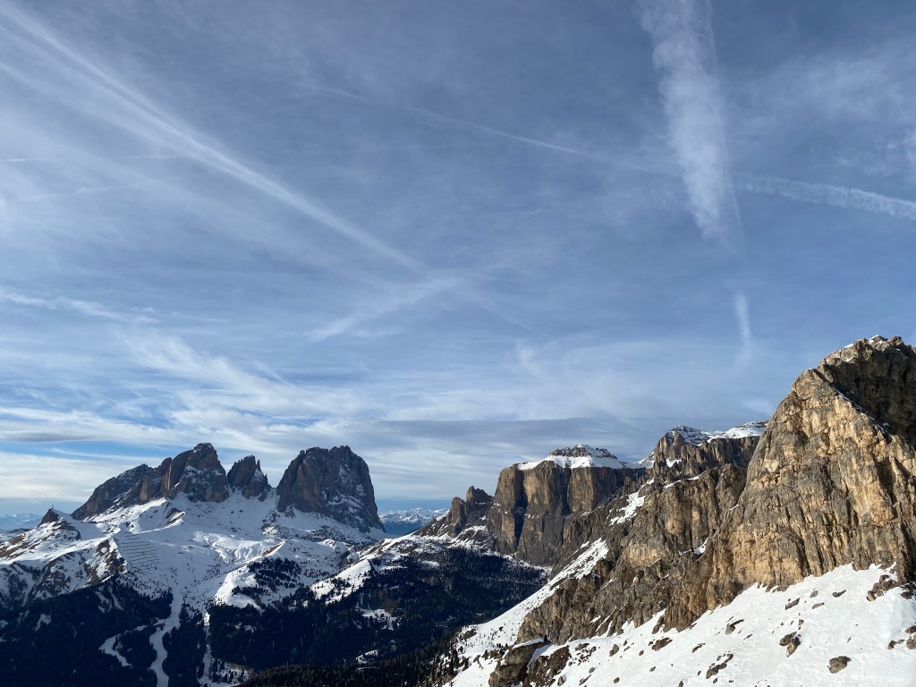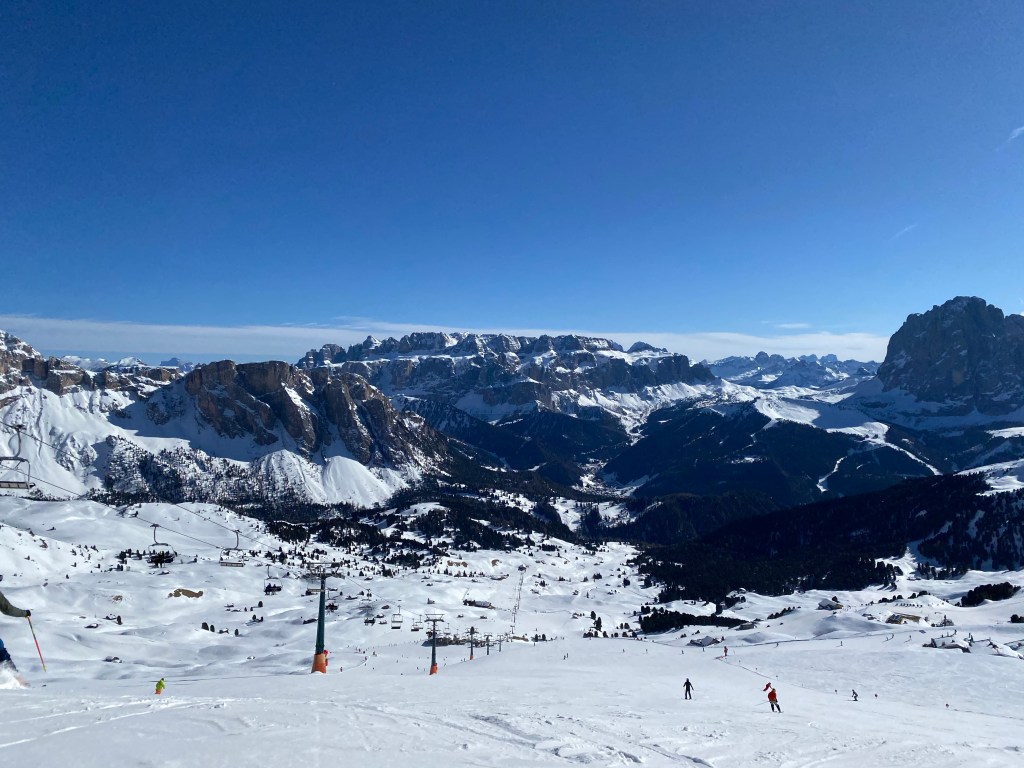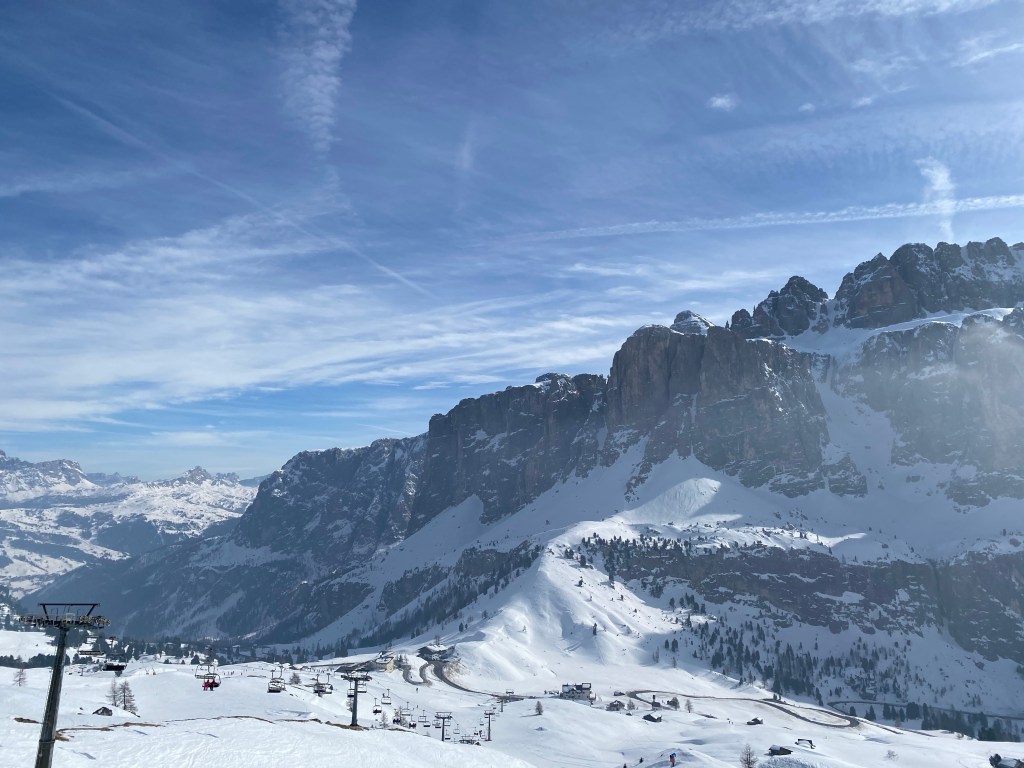 En av dagarna rörde vi oss enbart i Val Di Fassa området. Det är den dal där Canazei ligger. Bara det området är galet stort. Den dagen var det blåsigt så flera liftar stod stilla stora delar av dagen. Trots blåsten var det klarblå himmel och strålande sol.