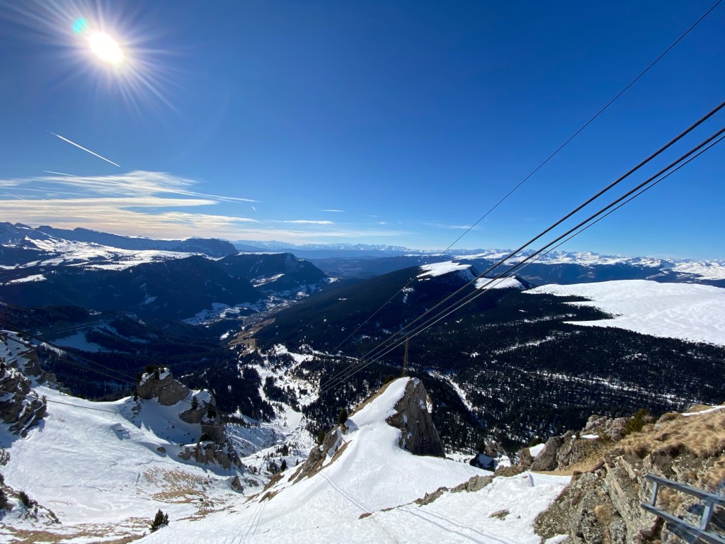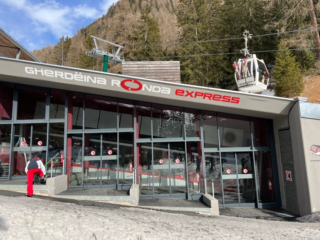Efter tåget fick vi ta kabinbanan för att ta oss tillbaka bort mot Val Di Fassa.