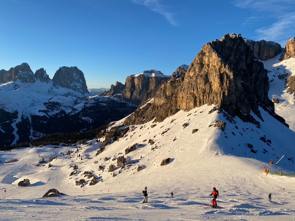 Canazei ligger på 1460 meters höjd i Val Di Fassadalen och blir en jättebra utgångspunkt för skidåkning i Dolomiterna. Med ett skidpass kan du röra dig fritt över hela området. Och området är verkligen enormt stort! Den totala pistlängden ligger på hela 1220 km.