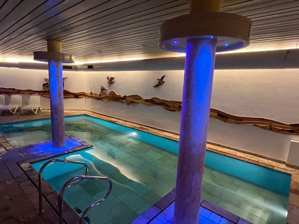 Spa delen är mindre med pool och bastu. Så skönt att få hänga här efter en dag i backen.