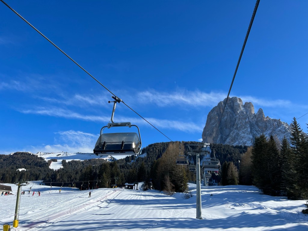 Skidåkningen i Dolomiterna är fantastik! Backarna är så otroligt långa. Det är inte många backar vi åkt i flera gånger. Totalt har vi under våra 6 dagar åkt 106 liftar, 56 olika liftar och 189 km pist. Alltså har vi kvar över 400 olika liftar att testa…