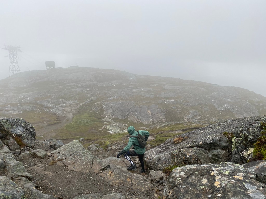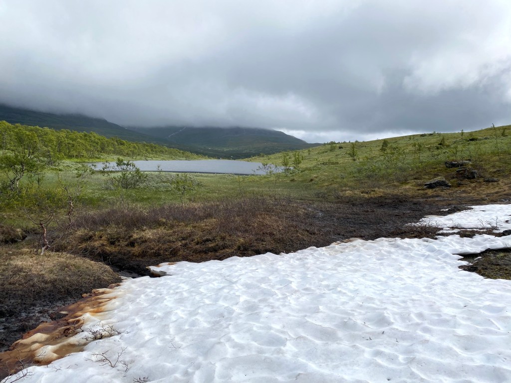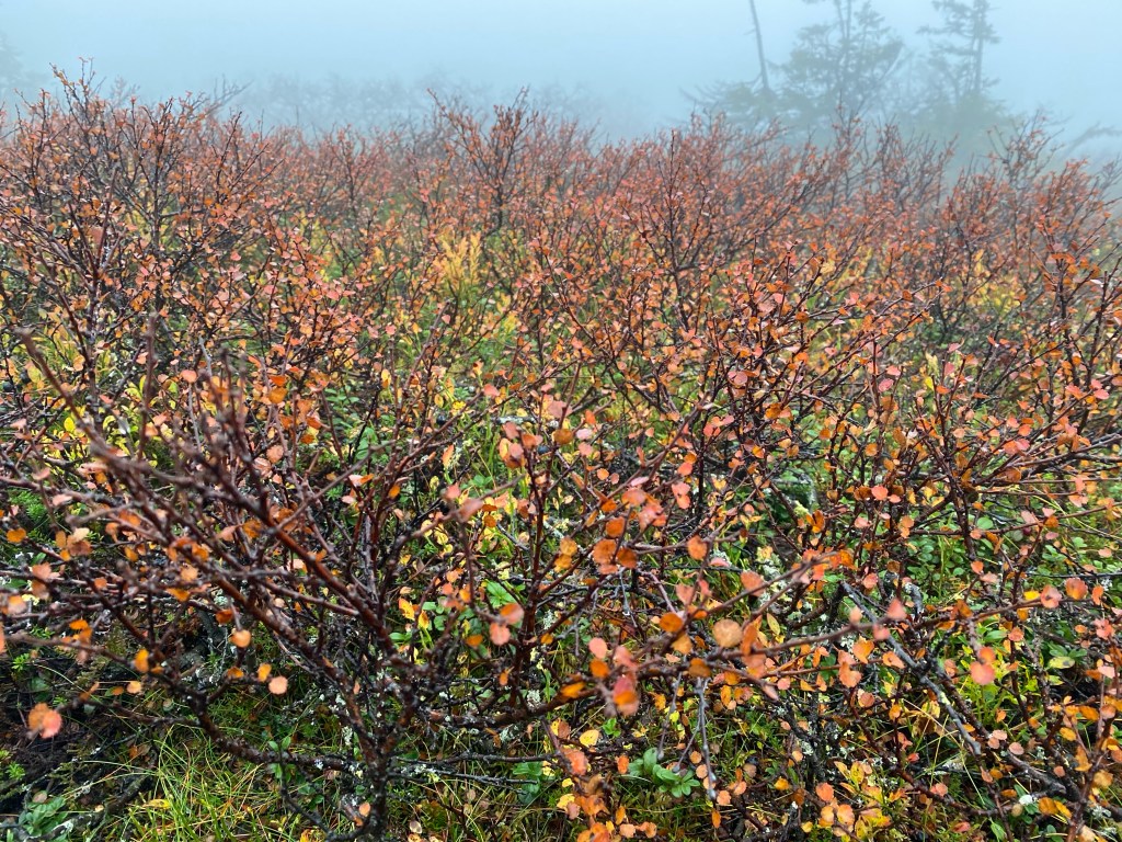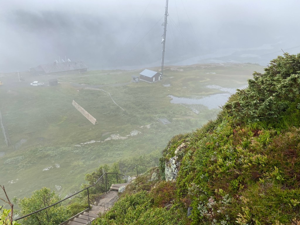 Vid Hemfjällsstugan blev det lunch och fikapaus. Vädret då? Solen såg vi inte mycket utav men det var vackert ändå. Det var ju väldigt dimmigt så vi såg som sagt inte många meter runtomkring men det är något otroligt vackert med den där dimvyn också.