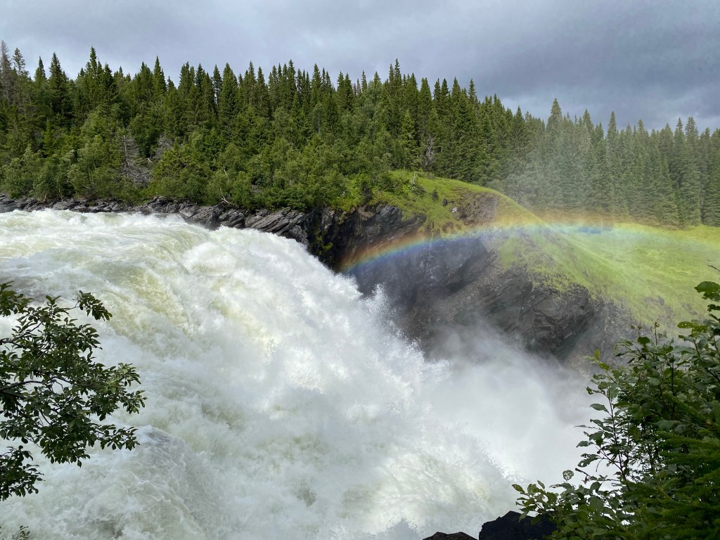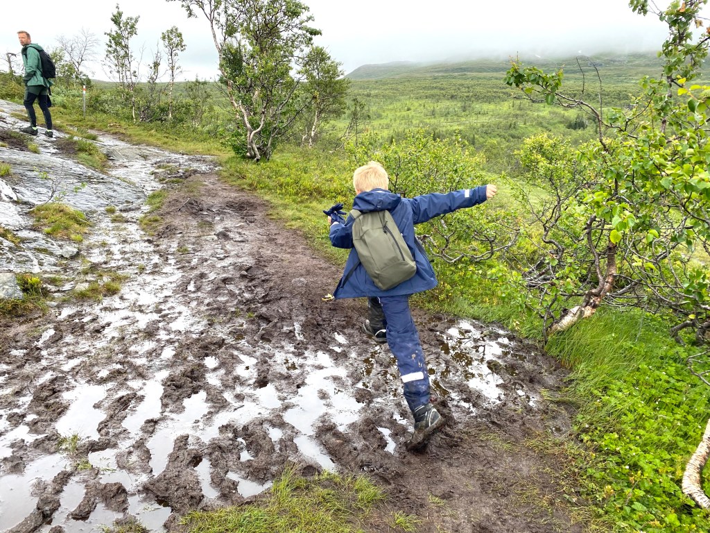 Från Hemfjällstugan kan man gå olika vägar den vi valde gav oss totalt 14-15 km. Det var både långa sträckor med spänger och sträckor utan spänger. Bitvis var det ganska blött också. Så bra skor är alltid att rekommendera.