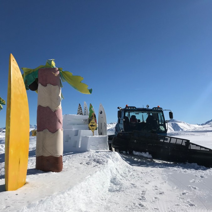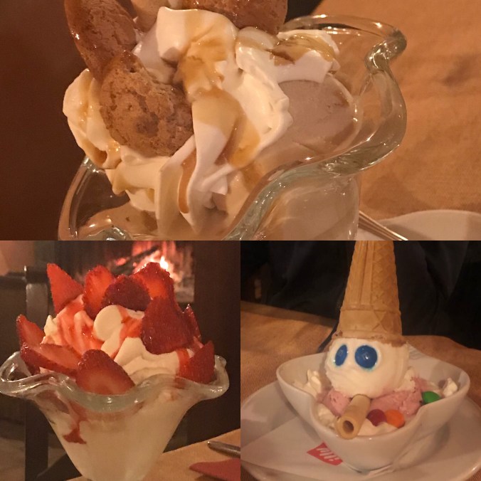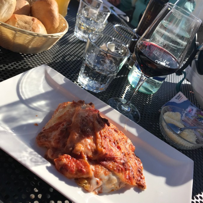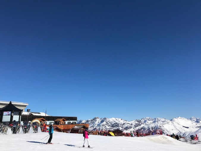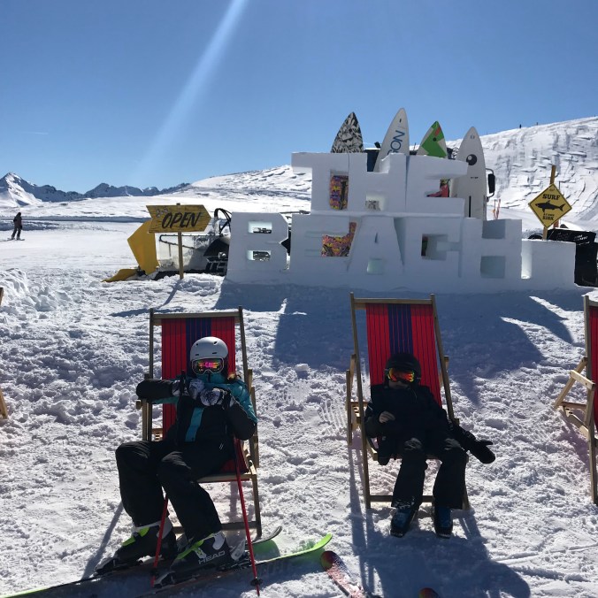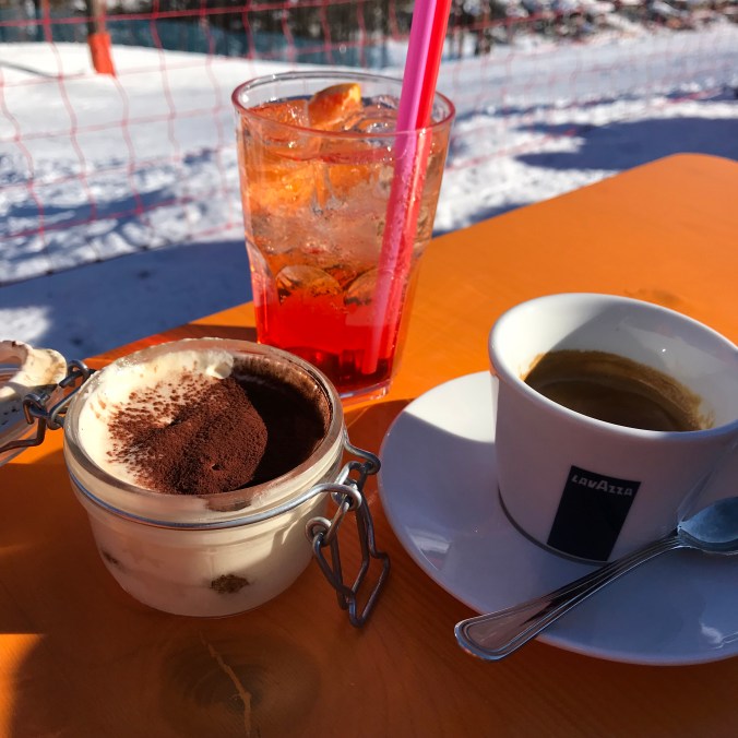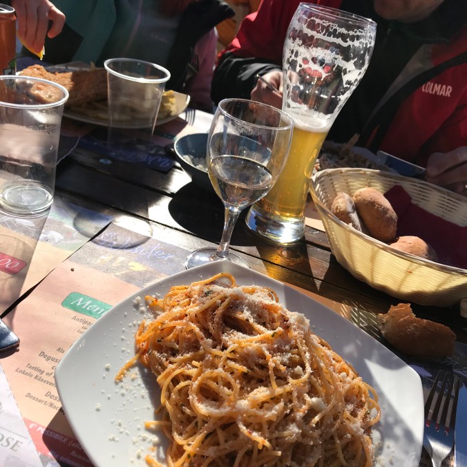 Glassväder. Lite kyligare kanske just den dagen, men men. Den här restaurangen låg längst ner vid backen/byn. Bra val denna dag eftersom det blåste på lite mer.