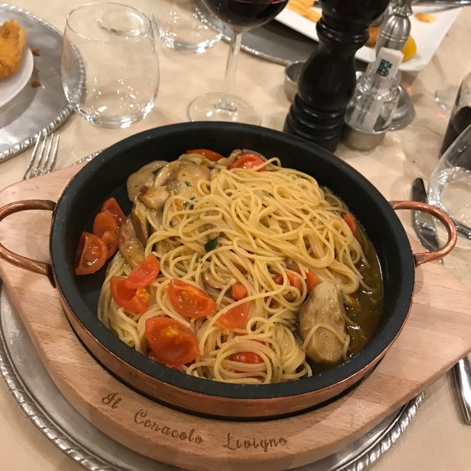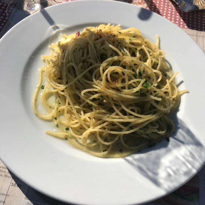 Mycket pasta har det blivit. Och strudel. Det är sedan gammalt. 😃 En god pastarätt var denna – med olja, vitlök och chili. Stark som tusan men himla god. Tog garanterat död på eventuella förkylningssymptom.