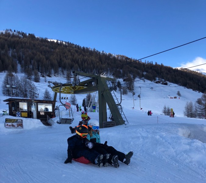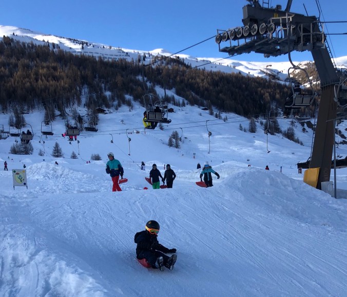 Barnen har många backar att välja på både enklare och svårare backar. För de mindre barnen som kanske inte alls åker skidor finns ett större lekområde på Carosello sidan.