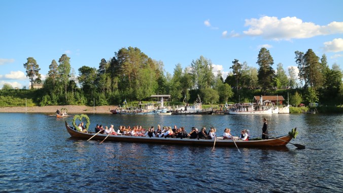Några spelar och några ror. När jag var liten fick jag åka med i en sådan kyrkbåt en gång, givetvis traditionellt klädd i leksandsdräkt. Kul att ha fått göra det.