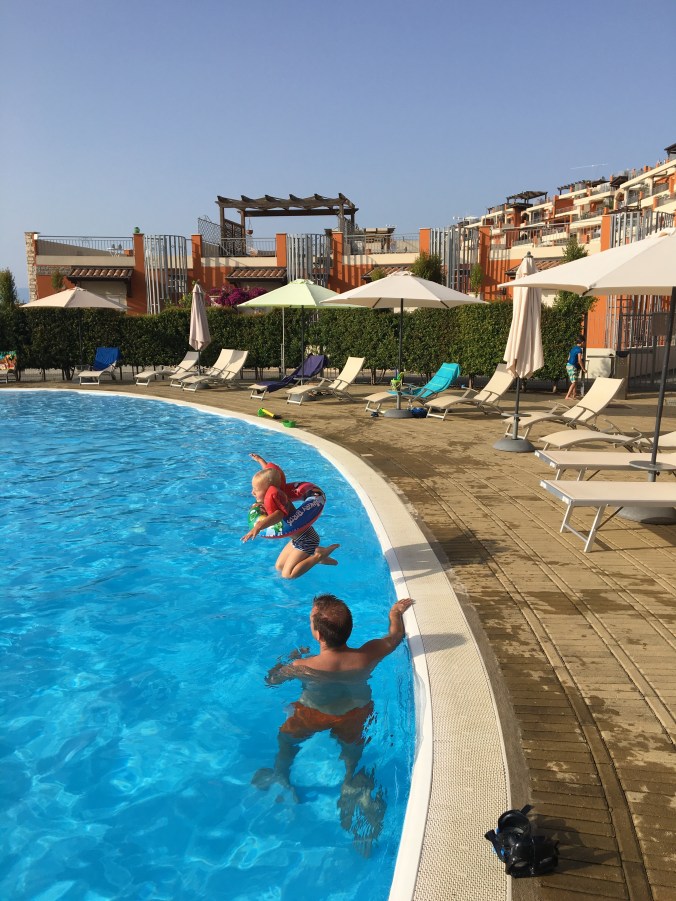 Under en vecka hyrde vi en lägenhet i den lilla orten Pizzo i Kalabrien. Lägenheten hittade vi via Blocket och den låg i ett nybyggt lägenhetsområde. Super fräsch och fin med en fantastisk balkong med utsikt över havet. På innergården fanns även en pool där man kunde hänga då man tröttnat på sandstranden.