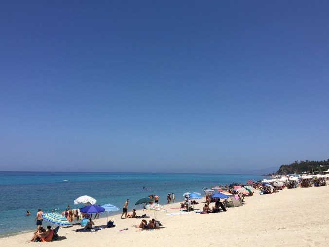 Tar man bilen så hittar man ännu fler helt fantastiska stränder inom 30-60 min avstånd från Pizzo. Milslånga sand- eller stenstränder med ett härligt vatten. På dessa stränder var det i regel aldrig någon trängsel heller. Bland annat åkte vi till orterna Briatico, Zambrone och Locri och badade.
