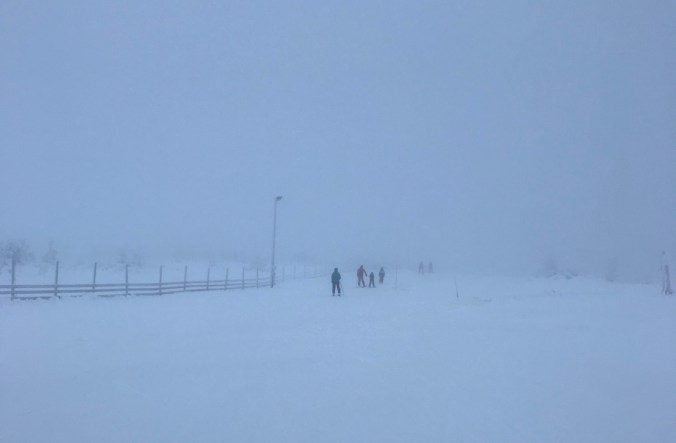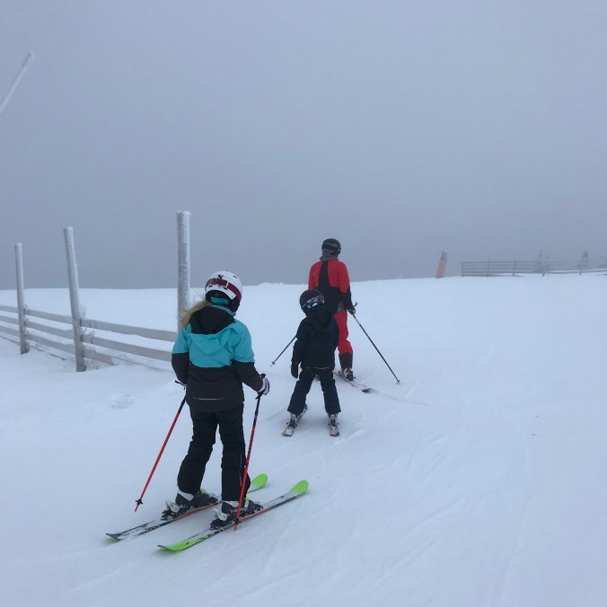 Här är vi på väg ner för en svart backe. Det ser faktiskt riktigt brant ut på bild. Men det gick hur bra som helst. Barnen susade ner med grym teknik. Bra jobbat skidläraren (pappan i familjen). 👏
