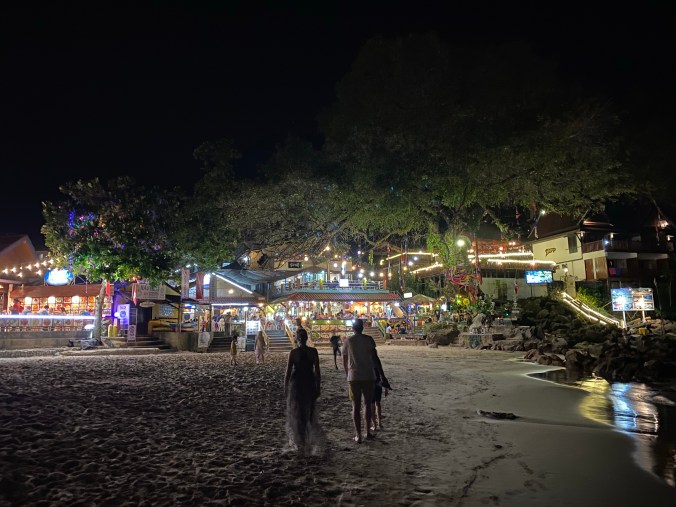 Vi bodde vid stranden Klong Khong. En skön strand utan trängsel. Ett antal restauranger, caféer och barer finns att välja mellan. Stranden är lite stenig periodvis då det ligger ett gammalt korallrev här. Det finnas inga solstolar att hyra här och tyvärr ingen snorkling heller direkt. Som nämnts i tidigare inlägg känns denna strand ganska oexploaterad även om det är en del turister här.