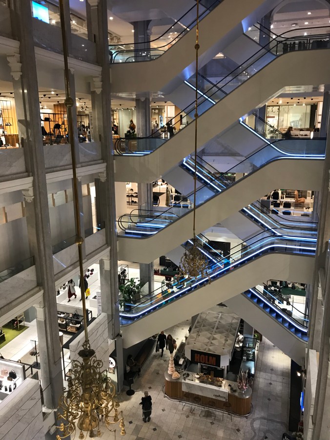 Längs Ströget och gatorna däromkring finner man de mesta. Både inrednings- och klädbutiker, stora gallerior och mindre butiker. Missa inte Illums Bolighus. Alltså dansk design – så mycket snyggt! Det finns en galleria bara med kläder och en med både inredning och lite kläder. Så mycket fint! Det finns ett stort utbud av klädbutiker i alla prisklasser i Köpenhamn. Sammanfattningsvis – vi var mycket nöjda med utbudet. 😃